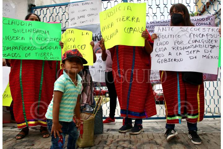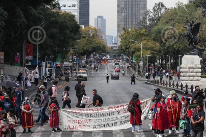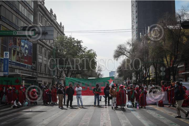 Integrantes del Movimiento Unificador de Lucha Triqui Independiente de Oaxaca se manifestaron por el retiro del campamento de los desplazados de Tierra Blanca en la Ciudad de México.