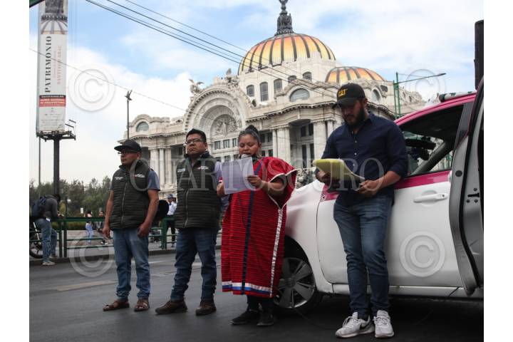 CIUDAD DE MÉXICO, 22ENERO2024.- En el marco de los 3 años del desplazamiento forzado de la comunidad Triki de Tierra blanca, Oaxaca se manifiestan de manera pacífica cerrando la Avenida de Eje central a la altura del Palacio de Bellas Artes para exigir a Gobernación una reunión y mesa de diálogo. Según vocero hay al menos 504 personas desplazadas incluyendo infancias y mujeres. Desde entonces ha habido 6 intentos de retorno pero el crimen organizado no ha permitido su regreso. También se declaró que la última reunión con gobernación fue cancelada por ellos sin reagendar a otra. FOTO: ANDREA MURCIA /CUARTOSCURO.COM