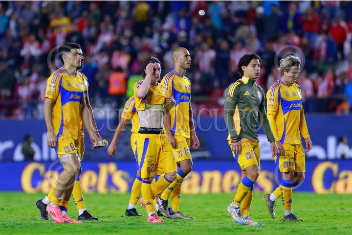 SAN LUIS POTOSÍ, SAN LUIS POTOSÍ, 28NOVIEMBRE2024.- Jugadores del Tigres de la UANL lamentaron caer 3-0 ante el Atlético de San Luis. Partido de ida de los cuartos de final del Torneo Apertura 2024 de la Liga BBVA MX en el Estadio Alfonso Lastras. FOTO: CÉSAR GÓMEZ/CUARTOSCURO.COM