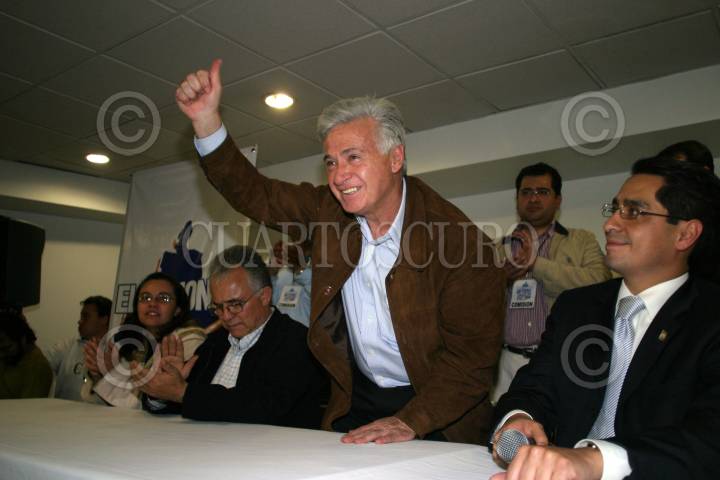 MEXICO, D.F. 29ENERO2006.- Demetrio Sodi de la Tijera, candidato electo del PAN para jefe de gobierno de la ciudad de México al termino de la conferencia que ofrecieron a los medios de comunicación al termino de la jornada electoral interna de dicho partido. FOTO: Nelly Salas/CUARTOSCURO.COM