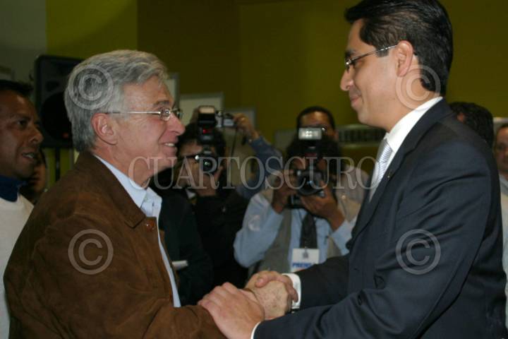 MEXICO, D.F. 29ENERO2006.- Demetrio Sodi de la Tijera, candidato electo del PAN para jefe de gobierno de la ciudad de México saluda a Carlos Gelista, presidente del PAN del D.F. FOTO: Nelly Salas/CUARTOSCURO.COM