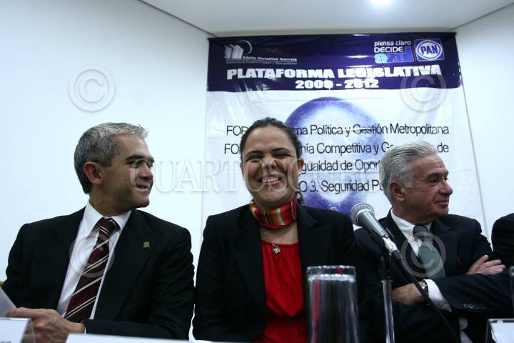 MÉXICO, D.F., 26FEBRERO2009.- Miguel Angel Mancera Espinosa, Procurador General de Justicia del DF, Mariana Gómez del Campo, dirigente local panista y Demetrio Sodi de la Tijera, presidente del consejo del Centro de Estudios para la Zona Metropolitana, durante la clausura de los foros de discusión y análisis para la “Plataforma Legislativa del Distrito Federal”, en Casa Lamm. FOTO: MOISÉS PABLO/CUARTOSCURO.COM