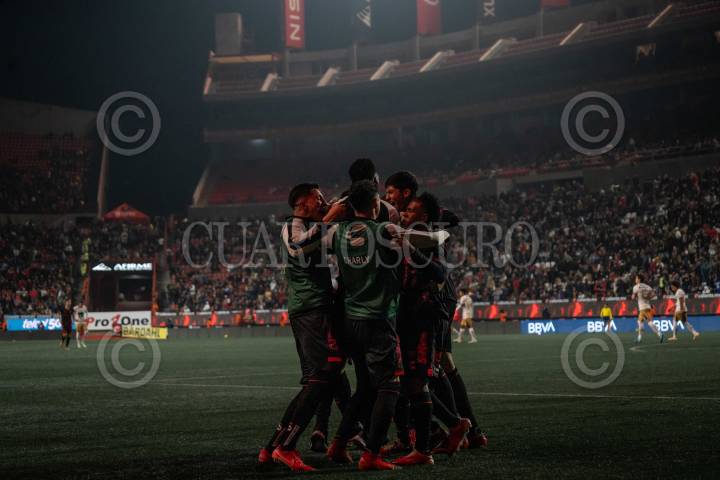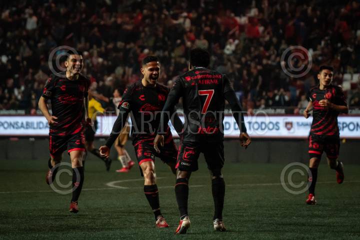 TIJUANA BAJA CALIFORNIA 25FEBRERO2025.-Xolos de Tijuana celebrando. Xolos de Tijuana rompió su racha negativa de cinco partidos perdidos consecutivos en el Torneo Clausura 2025 al golear 4-2 a Pumas en el Estadio Caliente. Con una destacada y sólida actuación, el equipo dirigido por Juan Carlos Osorio se impuso ante su afición, logrando una victoria que les da un respiro tras un mal paso en el campeonato. Con este contundente triunfo, los Xolos suman 7 puntos tras 9 jornadas disputadas, y aunque la situación aún es complicada, la victoria les permite mantener la esperanza de salir del bache en el que se encontraban. Ahora, el equipo tijuanaense pondrá su mirada en su próximo encuentro, donde se medirán ante León, un rival complicado. Xolos buscará aprovechar la oportunidad para dar un golpe sobre la mesa y seguir sumando puntos en su lucha por mejorar su posición en la tabla. FOTO: CHRIS NOYOLA /CUARTOSCURO.COM