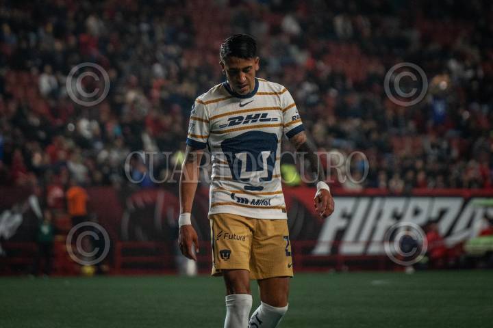 TIJUANA BAJA CALIFORNIA 25FEBRERO2025.-Robert Ergas del equipo de Pumas. Xolos de Tijuana rompió su racha negativa de cinco partidos perdidos consecutivos en el Torneo Clausura 2025 al golear 4-2 a Pumas en el Estadio Caliente. Con una destacada y sólida actuación, el equipo dirigido por Juan Carlos Osorio se impuso ante su afición, logrando una victoria que les da un respiro tras un mal paso en el campeonato. Con este contundente triunfo, los Xolos suman 7 puntos tras 9 jornadas disputadas, y aunque la situación aún es complicada, la victoria les permite mantener la esperanza de salir del bache en el que se encontraban. Ahora, el equipo tijuanaense pondrá su mirada en su próximo encuentro, donde se medirán ante León, un rival complicado. Xolos buscará aprovechar la oportunidad para dar un golpe sobre la mesa y seguir sumando puntos en su lucha por mejorar su posición en la tabla. FOTO: CHRIS NOYOLA /CUARTOSCURO.COM