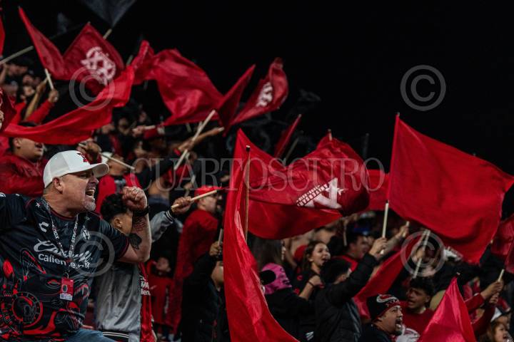 TIJUANA BAJA CALIFORNIA 25FEBRERO2025.-Afición de Xolos con banderas del equipo de Tijuana. Xolos de Tijuana rompió su racha negativa de cinco partidos perdidos consecutivos en el Torneo Clausura 2025 al golear 4-2 a Pumas en el Estadio Caliente. Con una destacada y sólida actuación, el equipo dirigido por Juan Carlos Osorio se impuso ante su afición, logrando una victoria que les da un respiro tras un mal paso en el campeonato. Con este contundente triunfo, los Xolos suman 7 puntos tras 9 jornadas disputadas, y aunque la situación aún es complicada, la victoria les permite mantener la esperanza de salir del bache en el que se encontraban. Ahora, el equipo tijuanaense pondrá su mirada en su próximo encuentro, donde se medirán ante León, un rival complicado. Xolos buscará aprovechar la oportunidad para dar un golpe sobre la mesa y seguir sumando puntos en su lucha por mejorar su posición en la tabla. FOTO: CHRIS NOYOLA /CUARTOSCURO.COM