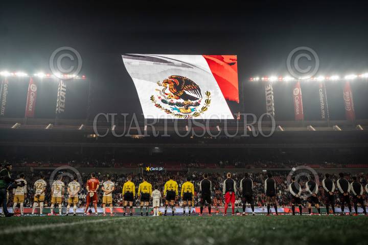 TIJUANA BAJA CALIFORNIA 25FEBRERO2025.-Xolos de Tijuana y el equipo de Pumas durante el himno nacional. Xolos de Tijuana rompió su racha negativa de cinco partidos perdidos consecutivos en el Torneo Clausura 2025 al golear 4-2 a Pumas en el Estadio Caliente. Con una destacada y sólida actuación, el equipo dirigido por Juan Carlos Osorio se impuso ante su afición, logrando una victoria que les da un respiro tras un mal paso en el campeonato. Con este contundente triunfo, los Xolos suman 7 puntos tras 9 jornadas disputadas, y aunque la situación aún es complicada, la victoria les permite mantener la esperanza de salir del bache en el que se encontraban. Ahora, el equipo tijuanaense pondrá su mirada en su próximo encuentro, donde se medirán ante León, un rival complicado. Xolos buscará aprovechar la oportunidad para dar un golpe sobre la mesa y seguir sumando puntos en su lucha por mejorar su posición en la tabla. FOTO: CHRIS NOYOLA /CUARTOSCURO.COM