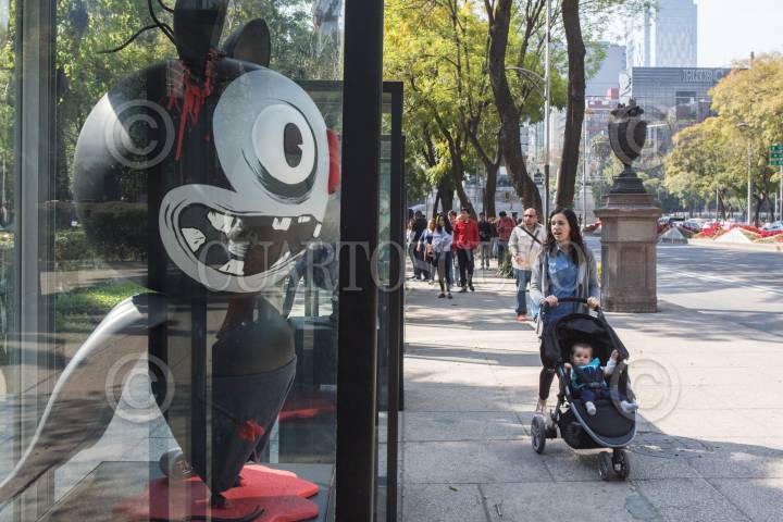 CIUDAD DE MÉXICO, 19DICIEMBRE2017.- Se realizó la inauguración de la exposición El Mundo de Tim Burton sobre Paseo de Reforma, la cual cuenta con 20 Stain Boys intervenidos por artistas mexicanos y fotografías de Leah Gallo. FOTO: TERCERO DÍAZ /CUARTOSCURO.COM