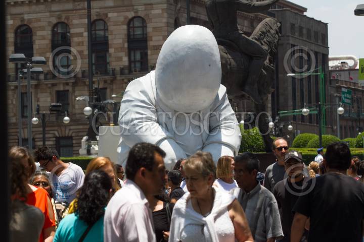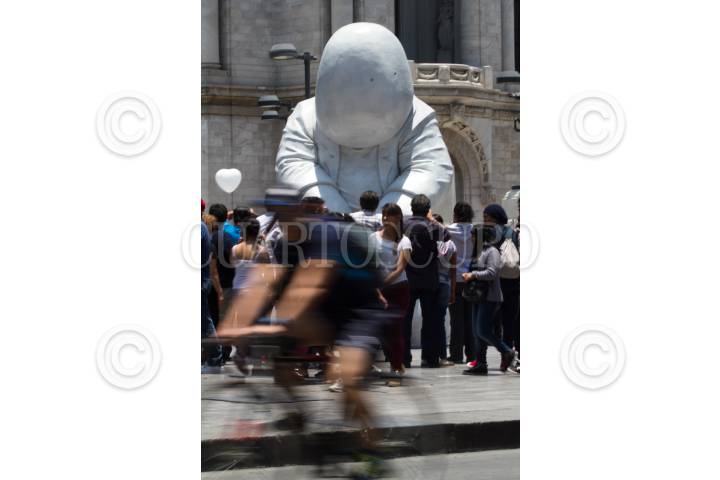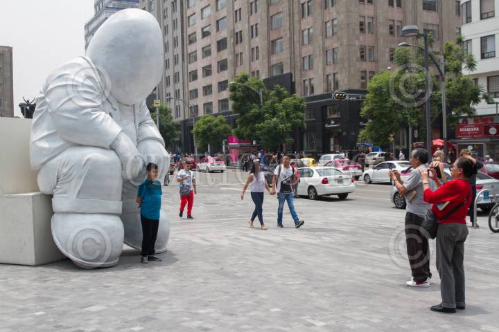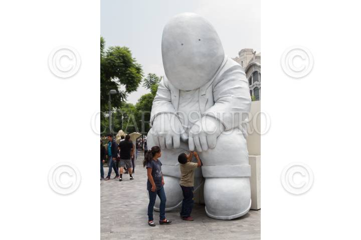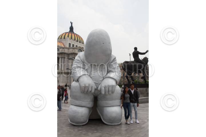 CIUDAD DE MÉXICO, 30JULIO2017.- Los capitalinos disfrután de "Timo" una escultura del artista Rodrigo de la Sierra, el gigante de color blanco, y del cual la gente debate si tiene o no tiene ojos, permanece impávido en las inmediaciones de la Alameda Central. FOTO: MOISÉS PABLO /CUARTOSCURO.COM