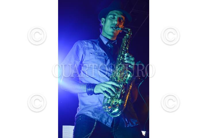MÉXICO, D.F., 28MARZO2011.- El pasado sábado 26 de marzo Timothy Brownie, integrado por Uriel del Toro (batería), Gonzalo Sandoval (sintetizador), Andrés Cruz (guitarra) Mariano Lanús (bajo) y Javier Cevacini (sax, en la imagen), la banda abrió su participación con el tema "Así hablo Zaratustra". Ésto se realizó en el Palacio Chino de Six Flags al sur de la ciudad. FOTO: MISAEL VALTIERRA/CUARTOSCURO.COM