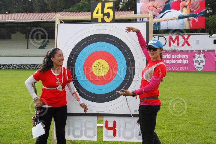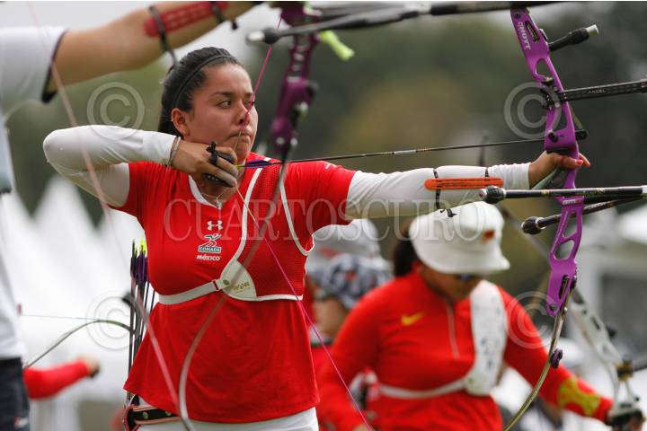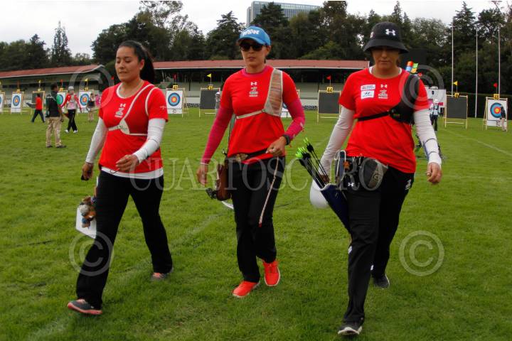 CIUDAD DE MÉXICO, 17OCTUBRE2017.- Las arqueras mexicanas, Aida Román, Alejandra Valencia, y Mariana Avitia, clasificaron a la siguiente ronda de arco que se está disputando en Campo Marte. FOTO: CUARTOSCURO.COM