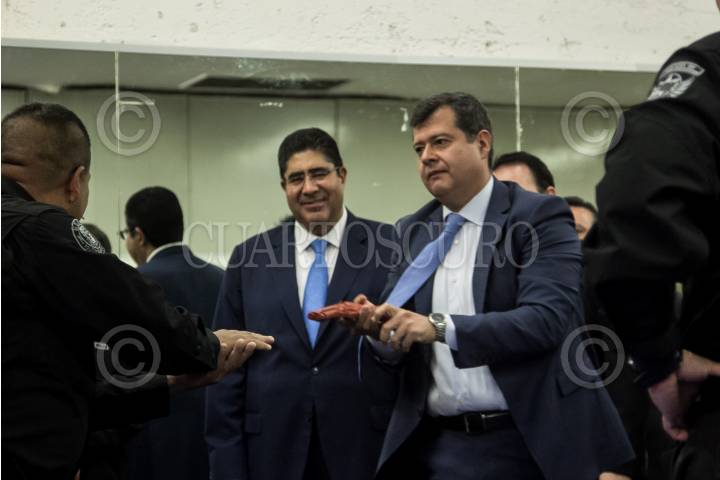 CIUDAD DE MÉXICO, 24JULIO2018.- Edmundo Garrido, procurador general de Justicia de la Ciudad de México, y José Ramón Amieva, el jefe de Gobierno de la ciudad, durante la inauguración el stand de tiro, así como el banderazo de salida de nuevos autopatrullas de la dependencia, en las inmediaciones del Centro de Capacitación y Adiestramiento de la Policía de Investigación. El nuevo stand tiene como fin mejorar las tácticas para la defensa de los elementos de seguridad ante una agresión con arma de fuego, o bien, la detención de delincuentes. Asimismo, se realizó una muestra de tácticas de neutralización en combate directo. FOTO: GALO CAÑAS /CUARTOSCURO.COM
