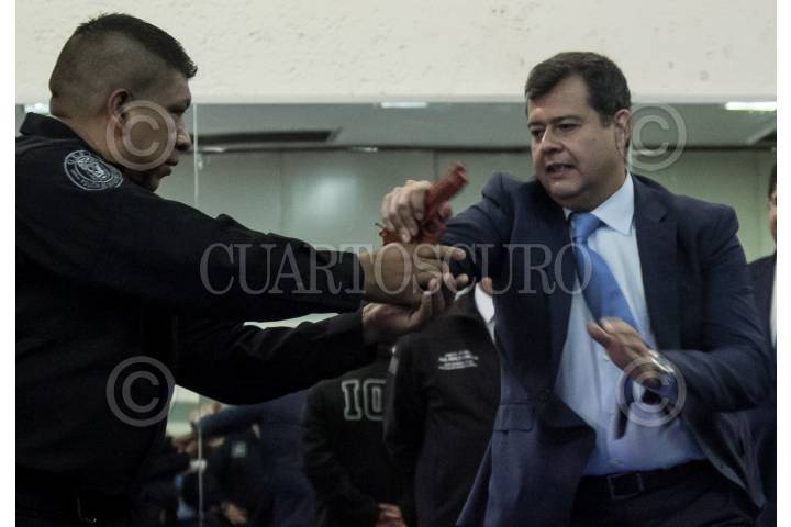 CIUDAD DE MÉXICO, 24JULIO2018.- En las inmediaciones del Centro de Capacitación y Adiestramiento de la Policía de Investigación fue inaugurado el stand de tiro, así como el banderazo de salida de nuevos autopatrullas de la dependencia. El nuevo stand tiene como fin mejorar las tácticas para la defensa de los elementos de seguridad ante una agresión con arma de fuego, o bien, la detención de delincuentes. Asimismo, se realizó una muestra de tácticas de neutralización en combate directo en las que participó el jefe de Gobierno de la ciudad José Ramón Amieva. FOTO: GALO CAÑAS /CUARTOSCURO.COM