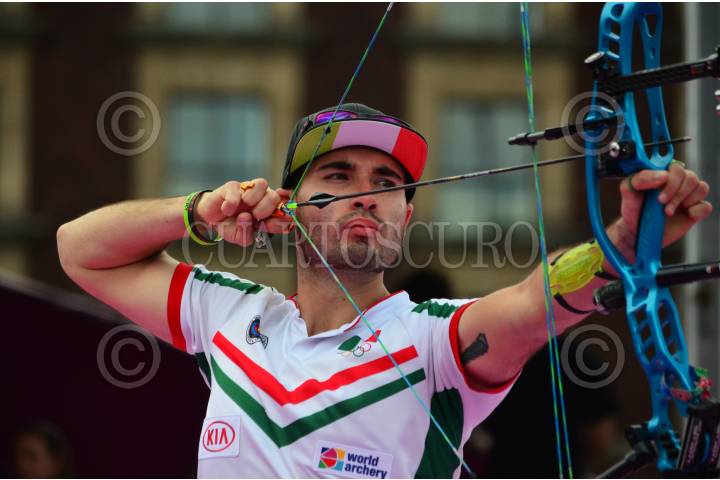 MÉXICO, D.F., 24OCTUBRE2015.- El arquero mexicano Mario Cardoso clasificó para la ronda de semifinales en la Copa Mundial de Tiro con Arco 2015 en el Zócalo Capitalino. FOTO: MARÍA JOSÉ MARTÍNEZ /CUARTOSCURO.COM
