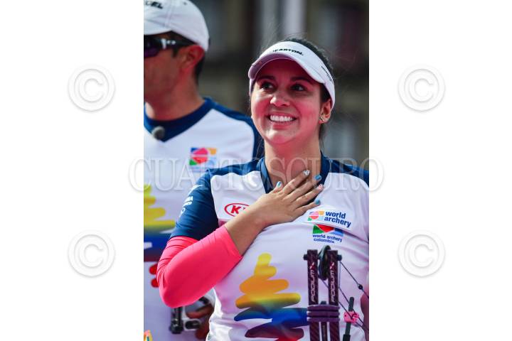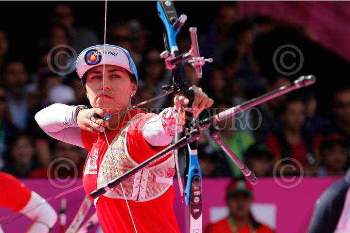 MÉXICO, D.F., 23OCTBRE2015.- En la imagen, la colombiana Sara López, quien obvtuvo el primer lugar y oro en la Copa Mundial de Tiro con Arco 2015. Mañana se realizará la última etapa en el Zócalo capitalino. FOTO: MARÍA JOSÉ MARTÍNEZ /CUARTOSCURO.COM