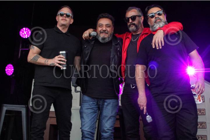 La banda mexicana Molotov al término de su conferencia de prensa por sus 26 años.