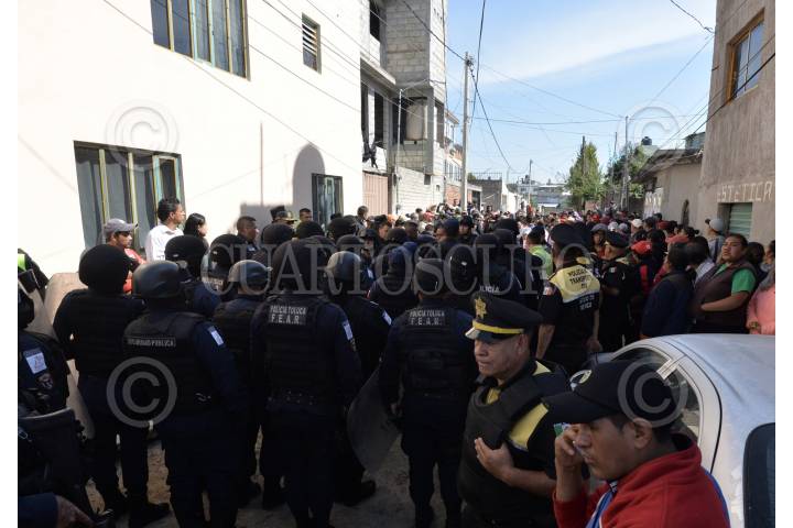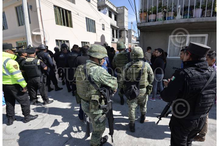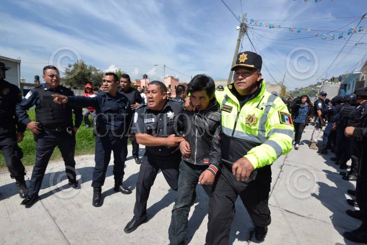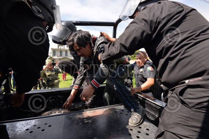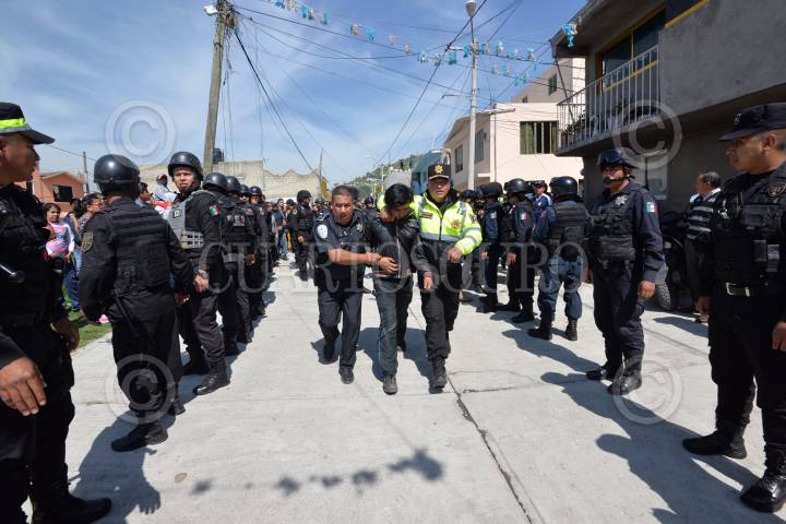 TOLUCA, ESTADO DE MÉXICO, 19JULIO2018.- Vecinos de la delegación de Santiago Tlacotepec en Toluca intentaron linchar a dos hombres que presuntamente se dedican al robó de vehículos en la zona, granaderos de la policia estatal y municipal apoyados por algunos militares lograron la liberación de estos hombres los cuales fueron remitidos al Ministerio Público para iniciar las averiguaciones y deslindar responsabilidades. FOTO: ARTEMIO GUERRA BAZ /CUARTOSCURO.COM