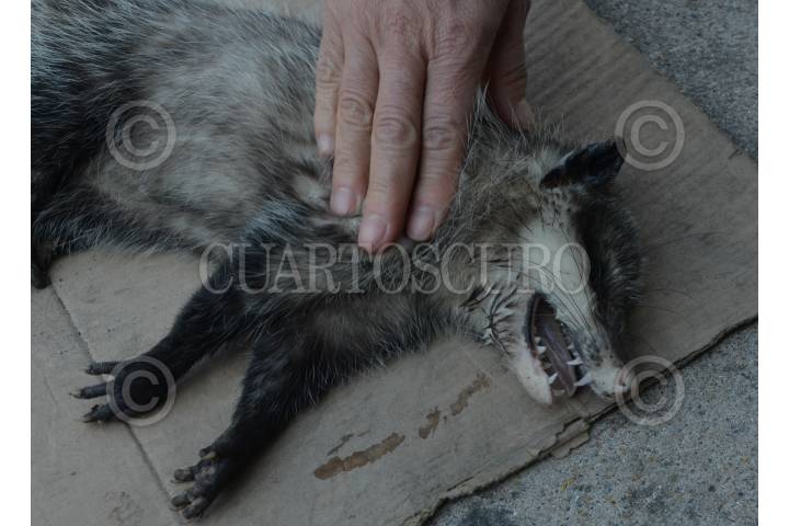 CIUDAD DE MÉXICO, 03DICIEMBRE2019.- Un tlacuache murió atropellado en avenida Juárez y Reforma, la gente que observó los hechos trataron de reanimarlo sin conseguirlo. FOTO: ARMANDO MONROY /CUARTOSCURO.COM