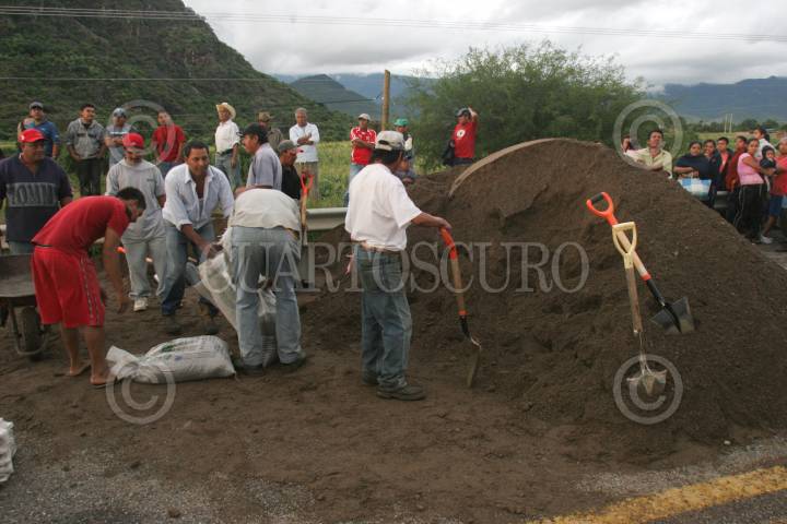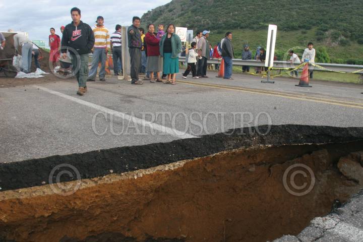 TLACOCHAHUAYA, OAXACA, 28SEPTIEMBRE2010.- Centenares de vehículos que se dirigían al municipio Santa María Tlahuitoltepec, donde la madrugada de hoy un alud sepultó a una comunidad, se quedaron varados debido a que el puente de Macuilxochitl se partió en dos debido al fuerte caudal que cruza el rio y al mal tiempo que impera en la zona. FOTO: SAÚL LÓPEZ/CUARTOSCURO.COM