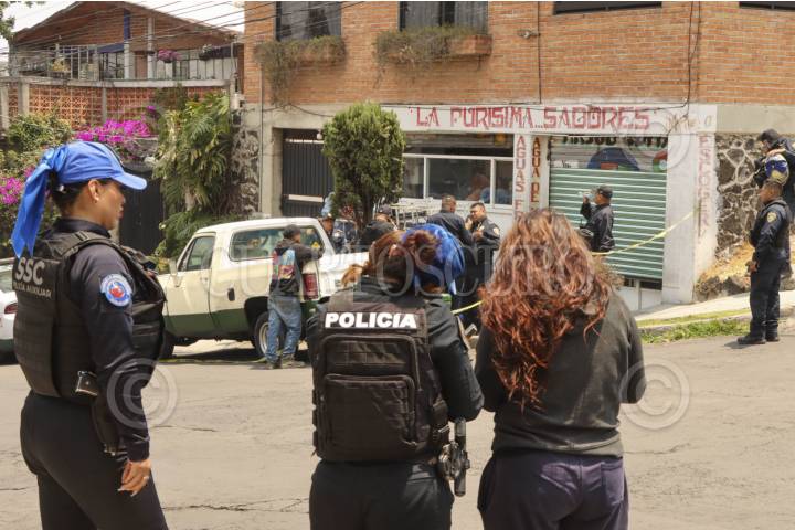 CIUDAD DE MÉXICO, 22ABRIL2025.- Un hombre de aproximadamente 35 años de edad fue asesinado al interior de una purificadora de agua en la Colonia Pedregal de San Nicolás 4 Sección. Según primeras versiones dos sujetos en motocicleta ingresaron al local ubicado en el cruce de Tetiz con Dzemul y tras una aparente discusión comenzaron a dispararle. Tras los hechos, la Fiscalía General de Justicia de la Ciudad de México (FGJCDMX) abrió una carpeta de investigación para deslindar responsabilidades. Hasta el momento, no se ha definido el posible móvil del ataque armado, ocurrido a calle de Tétiz con Dzemul, en la colonia Pedregal. FOTO: ROGELIO MORALES/CUARTOSCIURO.COM