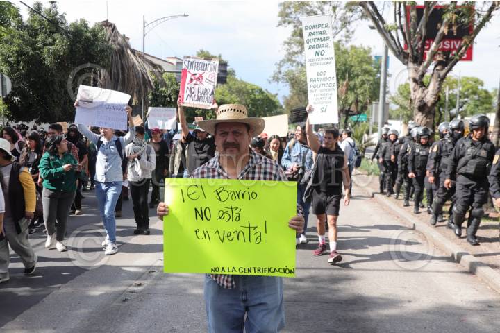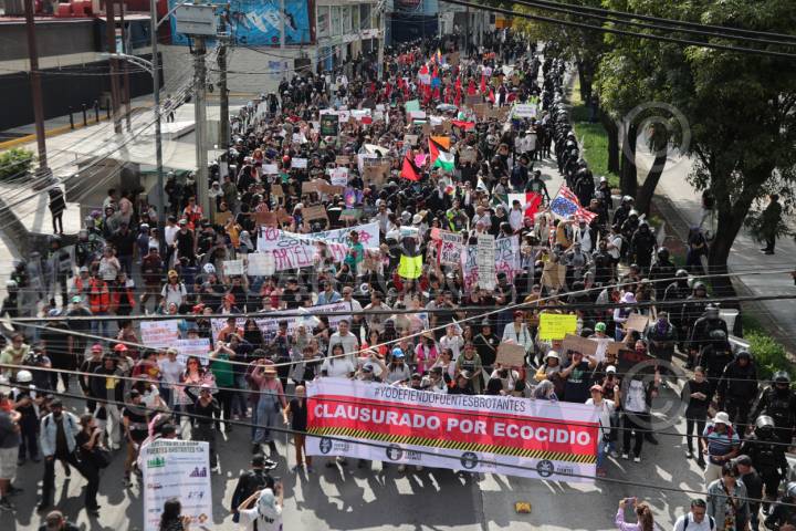 CIUDAD DE MÉXICO, 20JULIO2025. Segunda manifestación contra la gentrificación en la Ciudad de México. El contingente partió de la estación de metrobús Fuentes Brotantes rumbo a la estación El Caminero. La protesta es en contra del aumento de los costos de vida y el desplazamiento de habitantes originarios. FOTO: EDGAR NEGRETE LIRA/CUARTOSCURO.COM