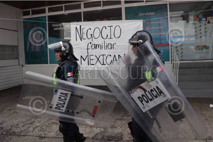 CIUDAD DE MÉXICO, 20JULIO2025.– Algunos negocios colocaron mantas en sus fachadas para prevenir posibles daños durante la segunda manifestación contra la gentrificación en la Ciudad de México. El contingente partió de la estación de Metrobús Fuentes Brotantes con rumbo a la estación El Caminero. La protesta fue en contra del aumento en los costos de vida y el desplazamiento de habitantes originarios. FOTO: EDGAR NEGRETE LIRA/CUARTOSCURO.COM