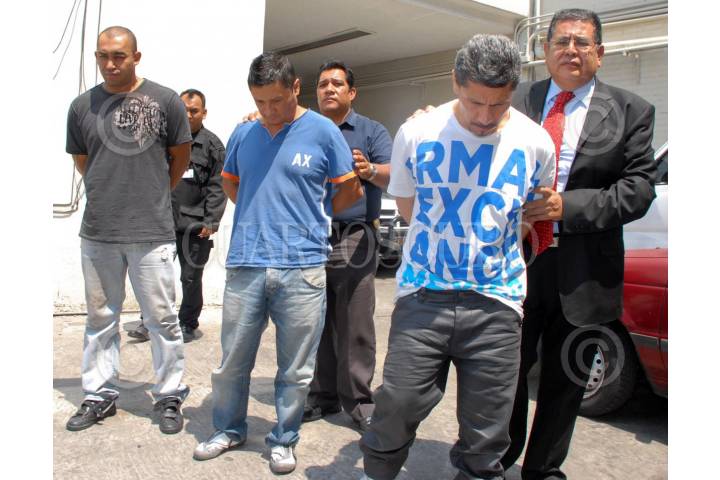 MÉXICO, D.F., 31MAYO2010.- Elementos de la policía, presentaron ante los medios de comunicación a tres sujetos uno de ellos de nacionalidad guatemalteca y los otros colombianos, como probables responsables del robo a viviendas del perímetro de Tlalpan. FOTO: CUARTOSCURO.COM