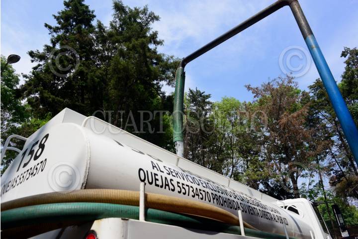 MÉXICO, D.F., 28ENERO2016.- Al menos 10 pipas esperan para cargar agua en el pozo 30, el pozo de abastecimiento se mantiene hasta hoy como n un movimiento de rutina, el operativo que impulsa el GDF para solucionar las falta de agua por el cierre del Cutzamala no ha generado mayor movimiento en esta zona, de acuerdo a los testimonios de los trabajadores. FOTO: ISABEL MATEOS /CUARTOSCURO.COM