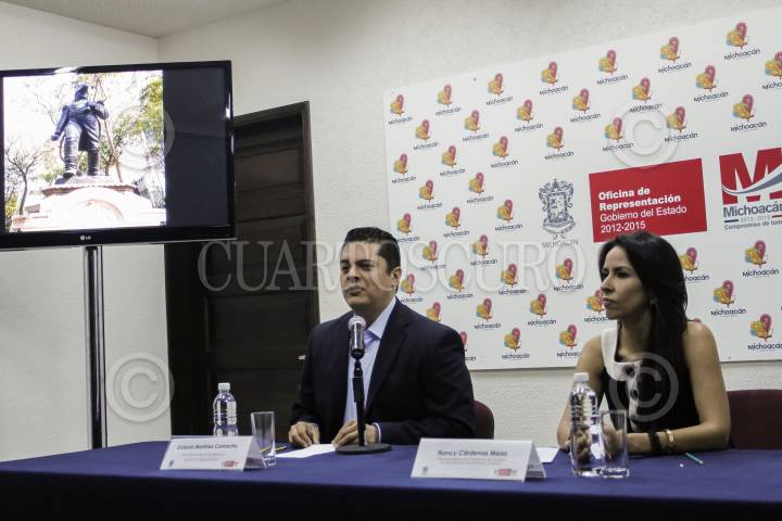 MÉXICO, D.F., 25JULIO2012.- Octavio Martínez Camacho, presidente de la Fundación Ignacio López Rayón, y Nancy Cárdenas Meza, representante del Gobierno del Estado de Michoacán en el DF, anunciaron que la estatua de López Rayón, que se encuentra sobre Paseo de la Reforma, será restaurada este domingo 29 de julio. FOTO: ISAAC ESQUIVEL /CUARTOSCURO.COM