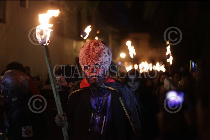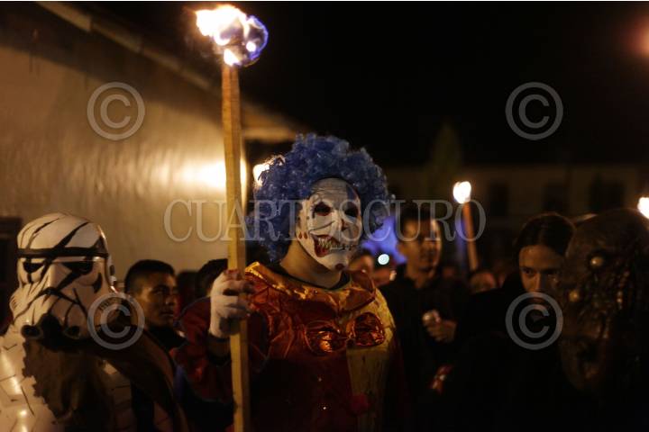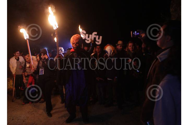 TLALPUJAHUA, MICHOACÁN, 02OCTUBRE2015.- La "Marcha de Bestias" se realizó esta noche cómo parte de las actividades del Festival de Cine Fantástico, de Terror y Sci-Fi, "FERATUM". En el Pueblo Mágico también se realizan proyecciones en plazas públicas, templos y sitios históricos. FOTO: ALAN ORTEGA /CUARTOSCURO.COM