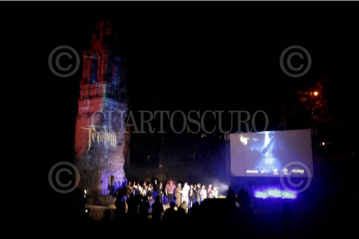 TLALPUJAHUA, MICHOACÁN, 09OCTUBRE2016.- 40 largometrajes de terror, sci-fi y fantasía fueron proyectados en la quinta edición del Feratum Film Fest. El acto de clausura se realizó en el teatro Cenobio Paniagua, con una nueva propuesta circense del circo Atayde Hermanos y dónde fue homenajeada Rosa Gloria Chagoyan "Lola la Trailera". FOTO: ALAN ORTEGA /CUARTOSCURO.COM