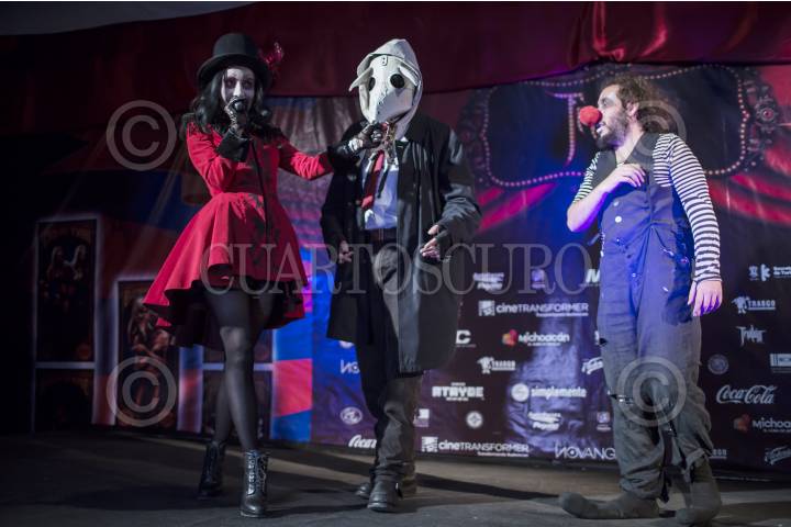 TLALPUJAHUA, MICHOACÁN, 09OCTUBRE2016.- 40 largometrajes de terror, sci-fi y fantasía fueron proyectados en la quinta edición del Feratum Film Fest. El acto de clausura se realizó en el teatro Cenobio Paniagua, con una nueva propuesta circense del circo Atayde Hermanos y dónde fue homenajeada Rosa Gloria Chagoyan "Lola la Trailera" y el cineasta Alfredo Gurrola. FOTO: ALAN ORTEGA /CUARTOSCURO.COM