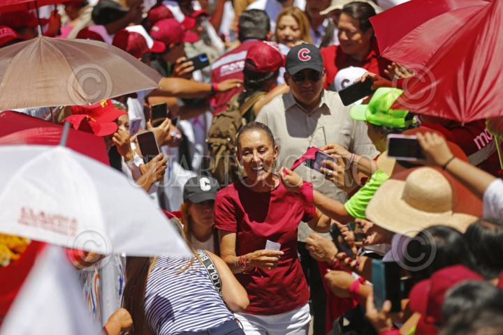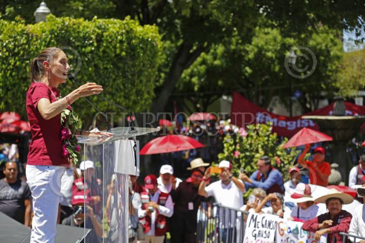 TLAQUEPAQUE, JALISCO, 03ABRIL2024.- Claudia Sheinbaum, candidata por morena a la presidencia de la republica, visito el el centro de Tlaquepaque como parte de su campaña, para realizar un mitin dejando en claro que dará continuidad al proyecto de la 4 Transformación. FOTO: FERNANDO CARRANZA GARCIA / CUARTOSCURO.COM