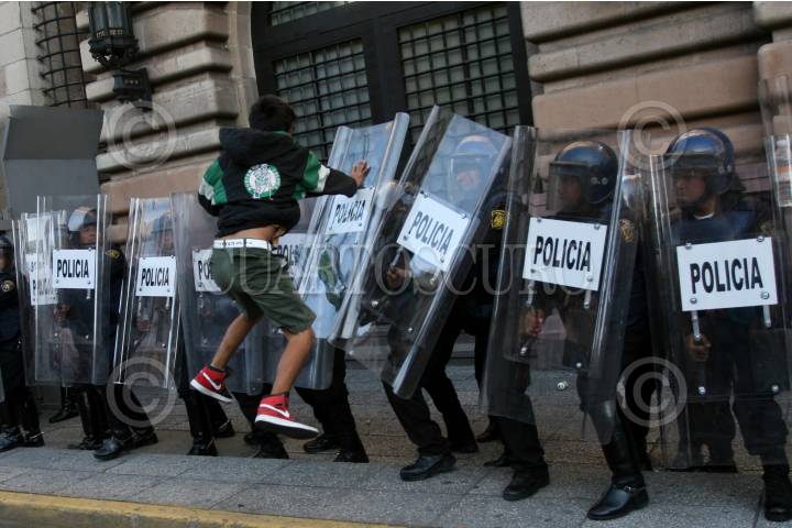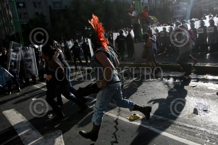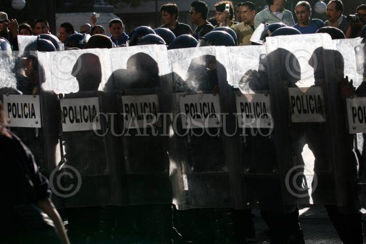 MÉXICO, D.F., 02OCTUBRE2009.- Granaderos de la Policía del Distrito Federal se enfrentaron contra las organizaciones sindicales y estudiantiles frente al Palacio de Bellas Artes en el marco de la marcha para conmemorar la masacre del 2 de octubre de 1968 en Tlatelolco. FOTO: GUILLERMO PEREA/CUARTOSCURO.COM