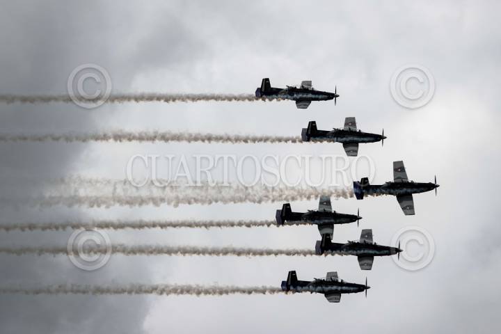 ATLANGATEPEC, TLAXCALA, 12SEPTIEMBRE2025.- Aeronaves dejan una estela de humo blanco durante el ensayo de la Parada Aérea Militar con motivo del desfile alusivo al 215 aniversario del inicio de la Guerra de Independencia de México. El acto se realizó en las inmediaciones de la Estación Aérea Militar No. 9 de la SEDENA. FOTO: GALO CAÑAS/CUARTOSCURO.COM