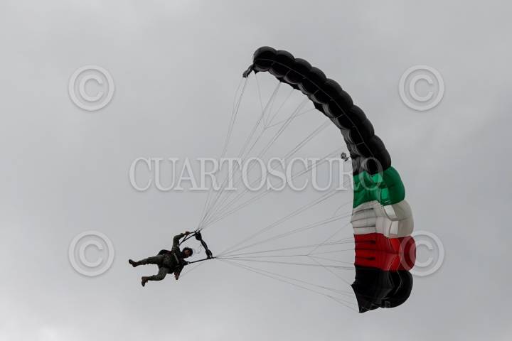 ATLANGATEPEC, TLAXCALA, 12SEPTIEMBRE2025.- La teniente intendente Jessica Anahí Lozano Arteaga, perteneciente al cuerpo de Fuerzas Especiales, realizó su salto en paracaídas durante el ensayo de la Parada Aérea Militar con motivo del desfile alusivo al 215 aniversario del inicio de la Guerra de Independencia de México. Lozano Arteaga será la encargada de dar el parte ante la presidenta Claudia Sheinbaum el próximo 16 de septiembre durante el desfile. El acto se realizó en las inmediaciones de la Estación Aérea Militar No. 9 de la SEDENA. FOTO: GALO CAÑAS/CUARTOSCURO.COM
