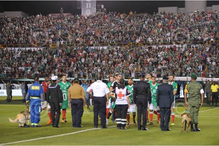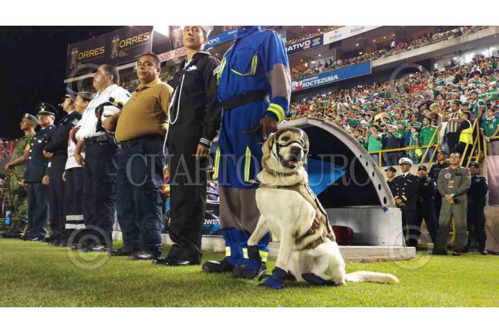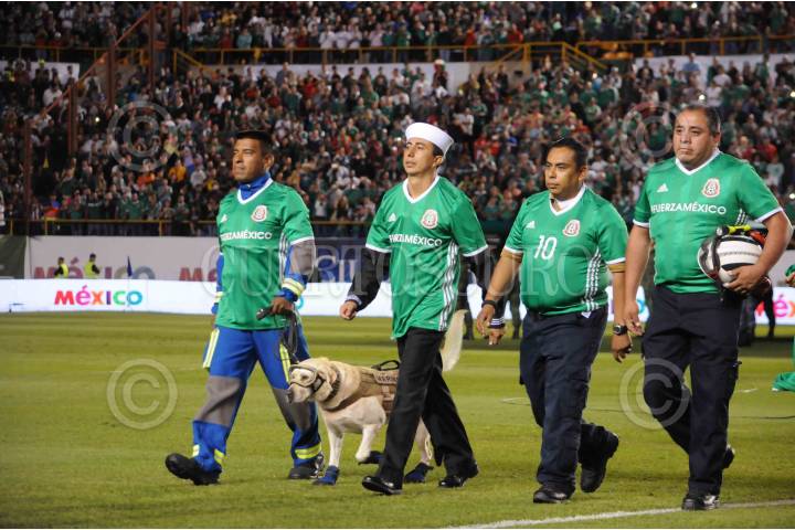 SAN LUIS POTOSÍ, SAN LUIS POTOSÍ, 06OCTUBRE2017.- Durante el partido de futbol de México contra Trinidad y Tobago, se le rindió homenaje a la perra rescatista Frida, por sus labores en la capital después del sismo del pasado 19 de septiembre. FOTO: DIEGO SIMÓN SÁNCHEZ /CUARTOSCURO.COM