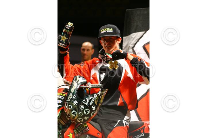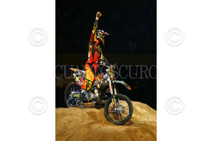 MÉXICO,D,F.,08SEPTIEMBRE2007.-Todd Potter primer celebra su victoria después de haber realizado su rutinade la competencia en motocross categoria trick en el palacio de los deportes. FOTO:SASHENKA GUTIERREZ/CUARTOSCURO.COM