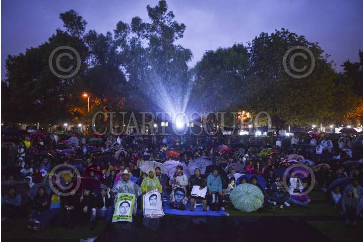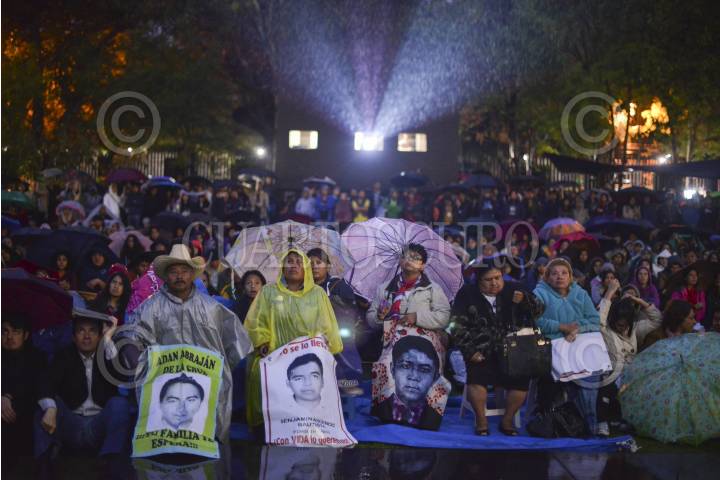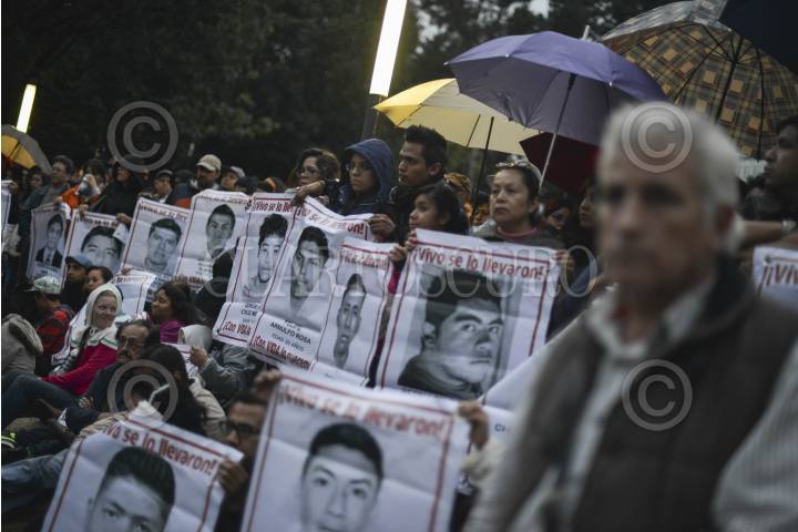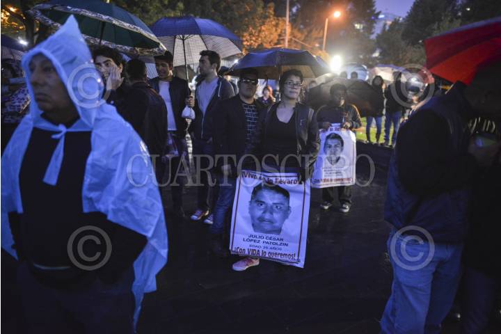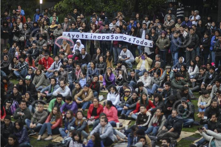 MÉXICO D.F., 01DICIEMBRE2014.- De la plancha del Zócalo al Ángel de la Independencia miles de personas, de diferentes organizaciones sociales, estudiantiles y políticas, acompañaron a familiares de los 43 estudiantes normalistas desaparecidos de Ayotzinapa, en la marcha por la aparición con vida de los jóvenes. FOTO: ADOLFO VLADIMIR /CUARTOSCURO.COM