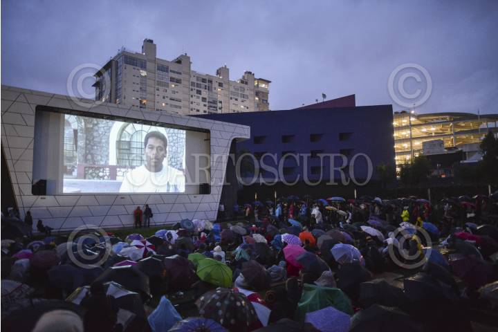 MÉXICO, D.F., 30MAYO2015.- Familiares de los 43 estudiantes normalistas desaparecidos, participaron en la presentación del documental "Ayotzinapa. Crónica de un crimen de Estado", de Xavier Robles, que se presentó en el foro al aire libre de la Cineteca Nacional. FOTO: ADOLFO VLADIMIR /CUARTOSCURO.COM