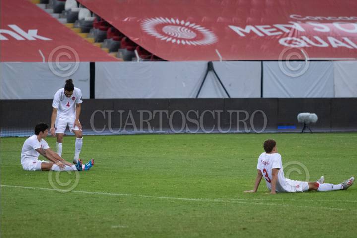 Jugadores de Canadá lucen derrotados tras perder el encuentro contra la Sub-23 de México y quedar fuera de Juegos Olímpicos.