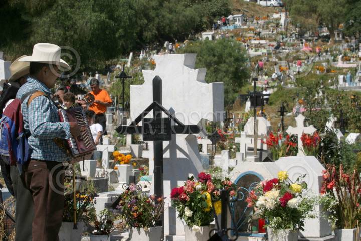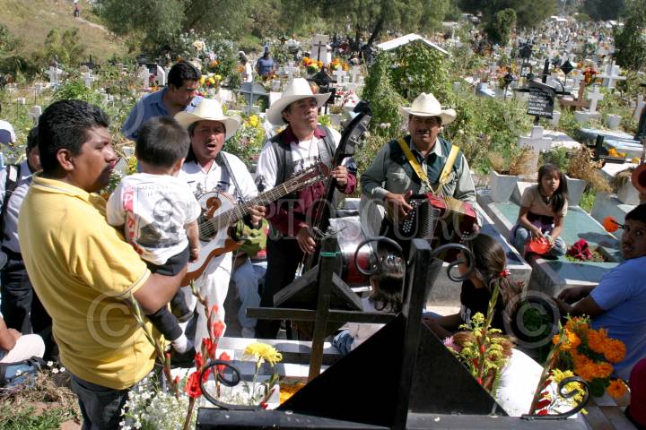 MEXICO, D.F., 02NOVIEMBRE20005.- Unos músicos cantan al pie de una de las miles de tumbas que se encuentran en el Panteón Civil San Nicolas Tolentino de la delgación Iztapalapa, como parte de la celebración del Día de Muertos. FOTO: Moisés Pablo/CUARTOSCURO.COM