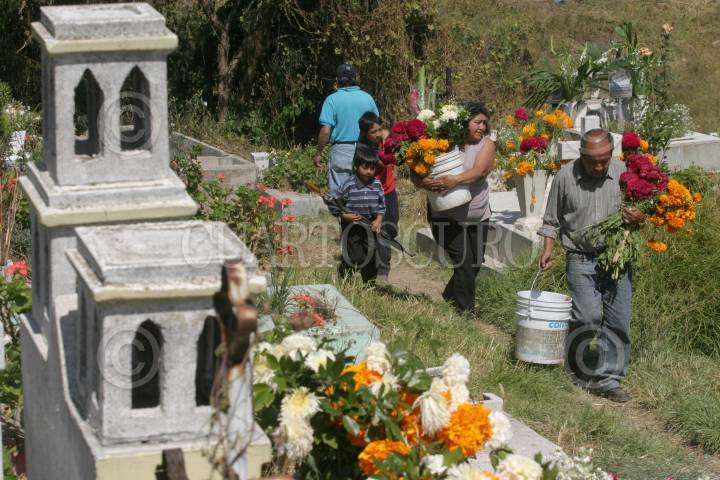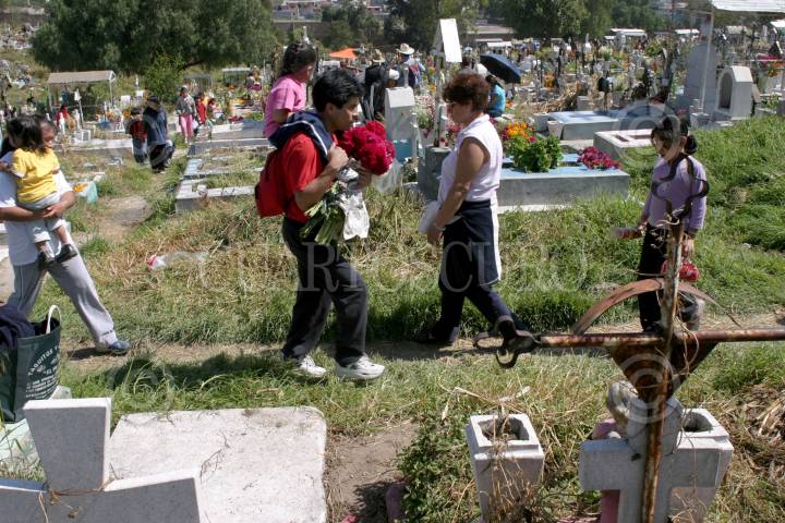 MEXICO D.F. 02NOVIEMBRE2005.- Familias enteras cargan con flores y utensilios acudieron al Panteón Civil San Nicolas Tolentino de la delegación Cuauhtemoc, para limpiar las criptas de sus parientes fallecidos en este Día de Muertos. FOTO: Moisés Pablo/CUARTOSCURO.COM