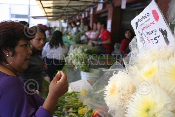 MEXICO D.F. 02NOVIEMBRE2005.- La Profeco se mantuvo alerta ante el alza de los precios de las flores en este Día Muetos, en la imagen un mujer compra afuera del Panteón Civil. FOTO: Moisés Pablo/CUARTOSCURO.COM