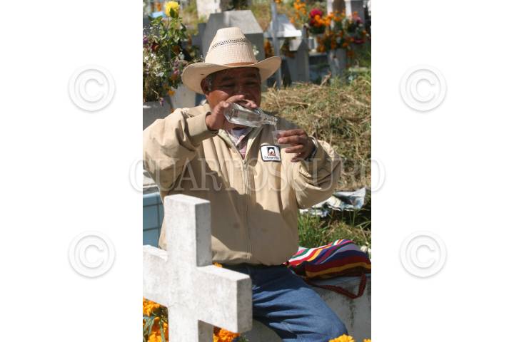 MEXICO, D.F., 02NOVIEMBRE20005.- Un señor brinda con tequila en la tumba de su ser querido, en el Panteón Civil San Nicolas Tolentino, durante las celebraciones del Día de Muertos. FOTO: Moisés Pablo/CUARTOSCURO.COM