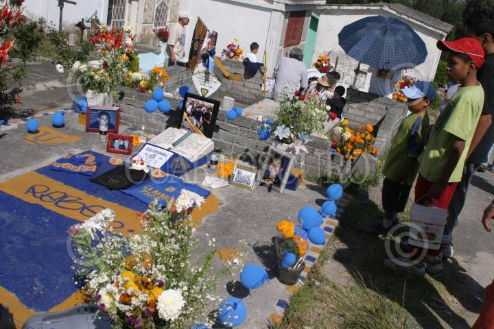 MEXICO D.F. 02NOVIEMBRE2005.- Una tumba de uno de los seguidores de los Pumas alegremente adornada con motivos de la institución deportiva, en el Panteón Civil San Nicolas Tolentino. FOTO: Moisés Pablo/CUARTOSCURO.COM