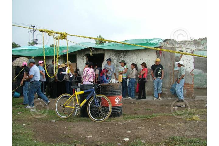 TEXCOCO, EDO. DE MÉX. 13AGOSTO2008.- Miembros de Antorcha Popular, lidereados por su líder estatal Jesús Tolentino Román Borjorquez, y Gloria Brito Nájera, dirigente de la región Atenco- Texcoco, se mantienen en espera que el gobierno de extracción perredista de esta localidad les de la factibilidad de servicios dentro del predio del Rancho Santa Martha, de uso agrícola para iniciar con la construcción de viviendas. FOTO: MARIO NULO/CUARTOSCURO.COM