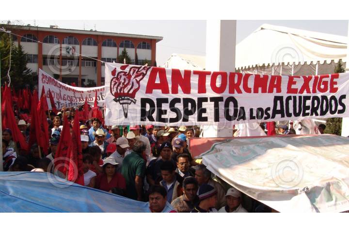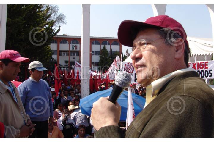 TOLUCA EDO MÉX 19ENERO2006 .- El líder de la organización de antorcha campesina y ex presidente municipal de Tolentino Roman Bojorquez, anuncio al presidente del partido revolucionario institucional que al no recibir respuesta de sus peticiones, trasladaría su manifestación a las afueras del gobierno del estado para pedir al gobernador Enrique Peña su intervención para la destitución del presidente del partido que lo lanso a la silla gubernamental. FOTO: Noé Marure/CUARTOSCURO.COM