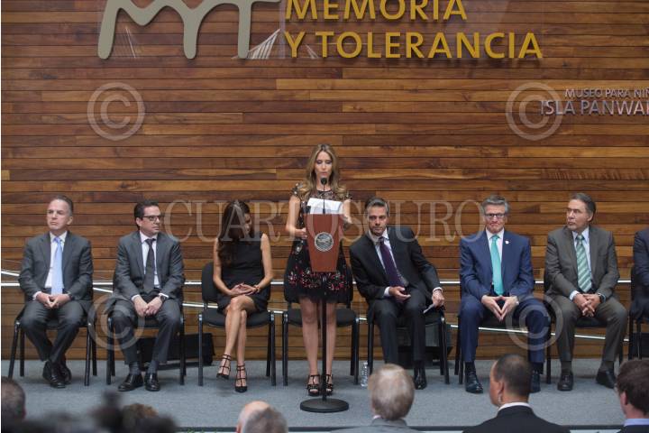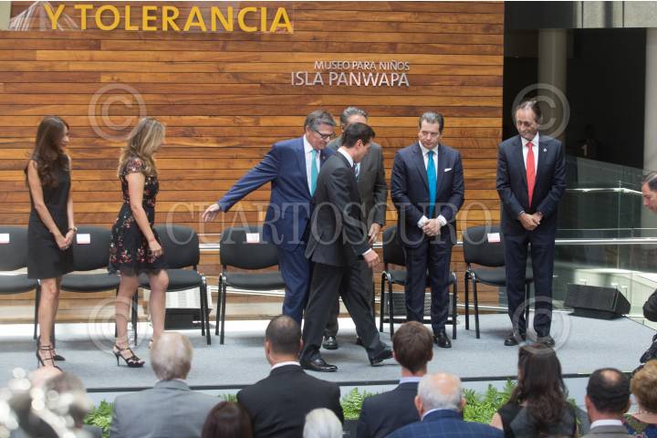 CIUDAD DE MÉXICO, 16ABRIL2018.- Enrique Peña Nieto, presidente de México, Sharon Zaga, presidente y Co fundadora del Museo Memoria y Tolerancia (MYT), e Isaac Chertorivski, encabezaron la inauguración de la pieza "Muro de Berlín" en el MYT FOTO: TERCERO DÍAZ /CUARTOSCURO.COM