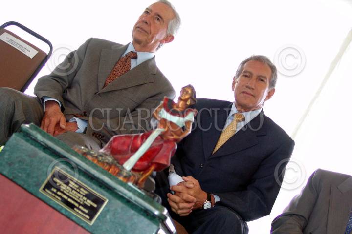 TOLUCA EDO. MEX 14MARZO2005.- El ex gobernador Ignacio Pichardo acompañando al mandatario mexiquense Arturo Montiel al recibir su reconocimiento de la comisión del agua del estado. FOTO: Leonardo Castro/CUARTOSCURO.COM