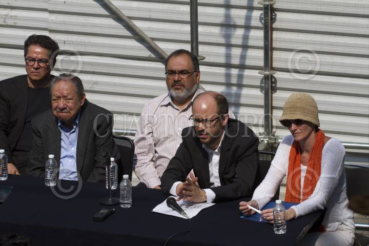 MÉXICO, D.F., 30ABRIL2014.- Autoridades del Fideicomiso del Centro Histórico presentaron el Proyecto de investigación científica para la restauración de la escultura ecuestre de Carlos IV y su pedestal, realizada por Manuel Tolsá. FOTO: ISAAC ESQUIVEL /CUARTOSCURO.COM